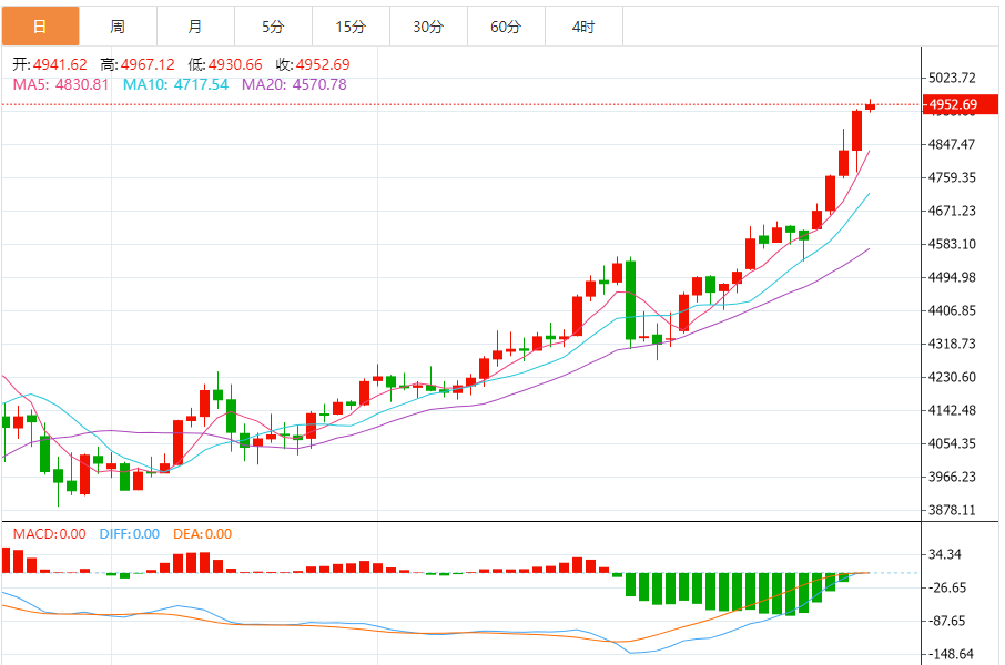今日黄金技术走势分析:剑指5000美元关口 黄金高位震荡博弈加剧