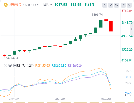 从4,261.33美元最低点测得5,594.20美元高点,38.2%回撤位5,085.05美元提供首个支撑,50%回撤位位于4,927.77美元以下。如果空头突破趋势线支撑,焦点将转向38.2%回撤,而反弹则可能瞄准23.6%回撤5,279.64美元;MACD弱势且RSI中性,上行空间需要改善动能以克服附近障碍。