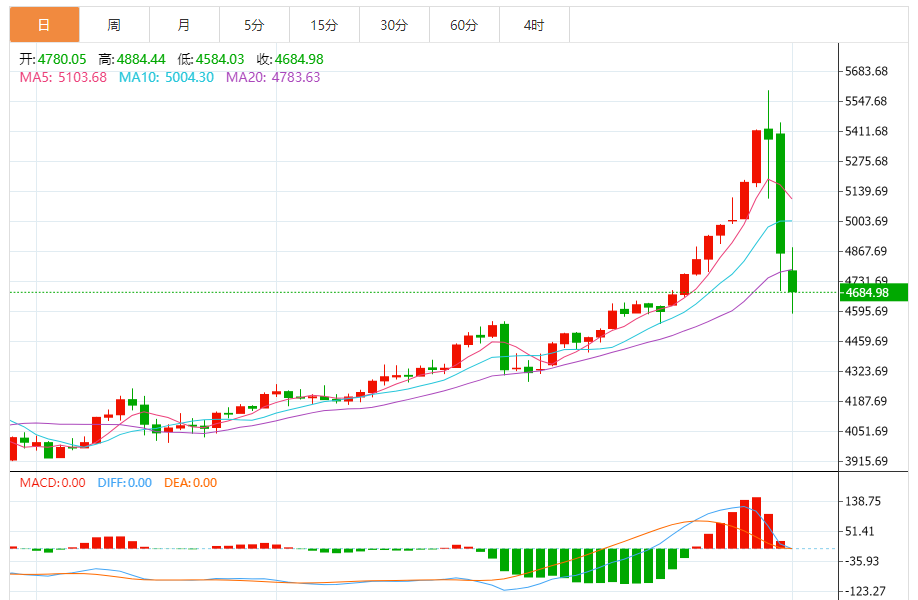 关键点位方面,支撑位明确分为两级:第一支撑位4680美元/盎司(今日盘中低点),若跌破将进一步下探4600-4700美元/盎司区间;强支撑位4750美元/盎司,为全球央行购金成本线,也是前期成交密集区,守住该点位有望开启震荡修复。压力位集中在4900-5000美元/盎司区间,该区间为前期获利盘了结密集区,同时也是5日均线与10日均线压制位,反弹至该区间需警惕抛压再次涌现。