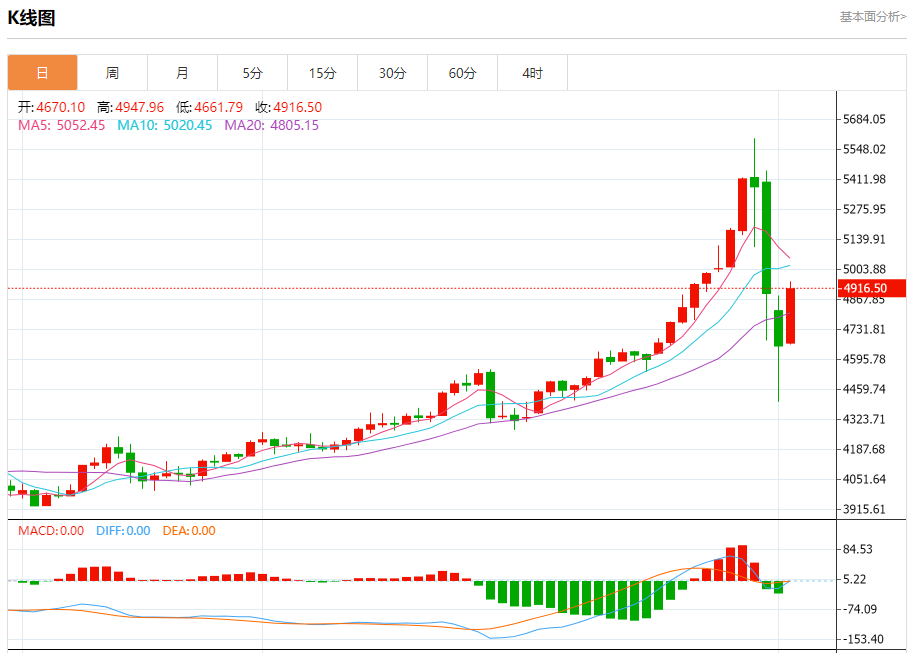 周二盘中,现货黄金报4915.44,涨幅5.54%。