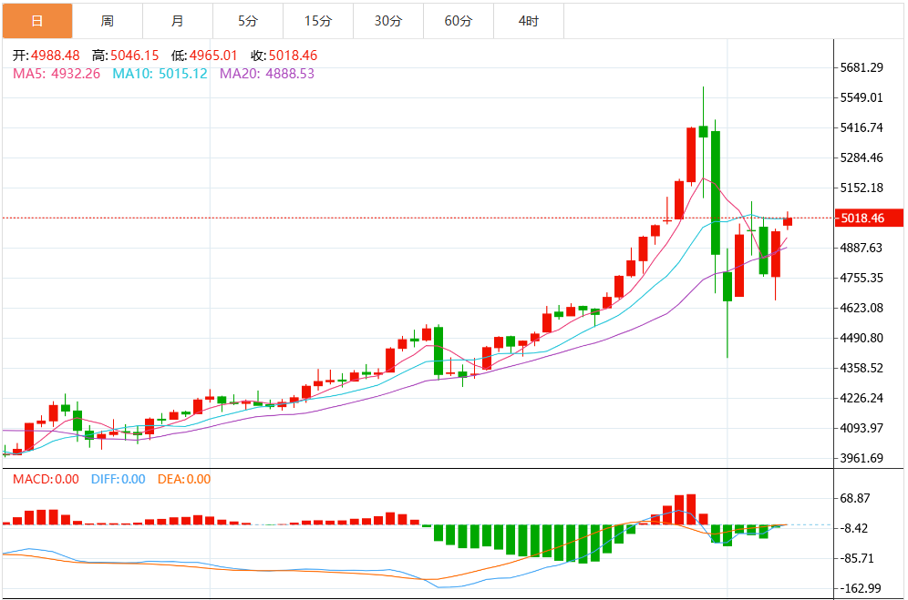 从技术形态看,黄金上周在日线图上形成一个巨大且偏空的“关键反转(key reversal)”,这是“顶部可能已出现”的线索之一。多头下一步目标是收盘突破5250美元的强阻力;空头下一步目标则是把期货价格压到本周低点4423.20美元下方。短线阻力首先在5000美元,其次是周四高点5045美元;短线支撑首先在4800美元,其次是隔夜低点4670美元。