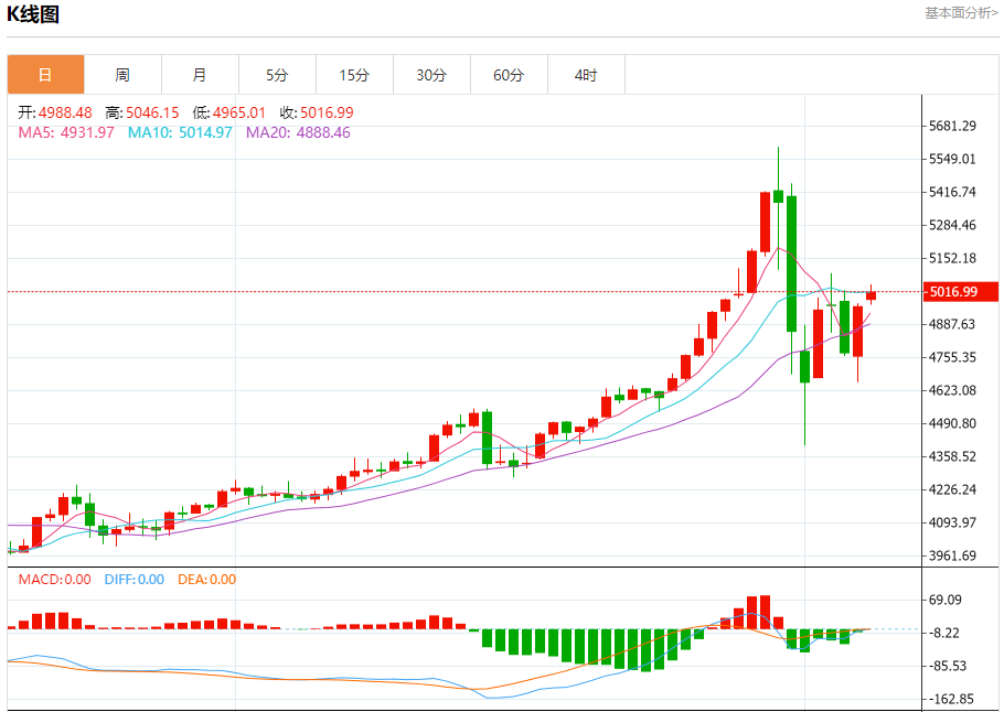 周一盘中,现货黄金报5016.34,涨幅1.15%。