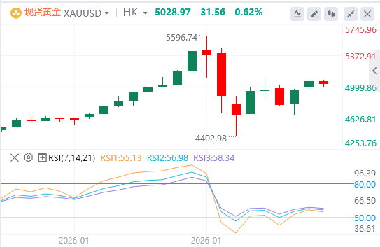 与此同时,从4397.52美元上涨的趋势线支撑了看涨倾向,支撑位在4819.19美元附近。如果黄金价格守住上升支撑,多头可能延续反弹,而收盘若收于其下方,将挑战上升趋势,为更深回调至4,397.52美元打开空间。