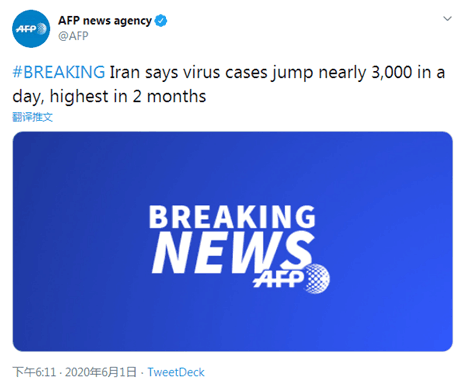 法新社刚刚报道称,伊朗方面表示,该国新冠病毒感染病例单日新增近3000例,为2个月以来最高。