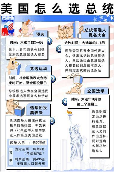 除总统选举外,国会、部分州长和海外属地总督以及地方立法zhi机构也将换届。根据美国宪法的规定,美国实行总统制,行政权属于总统。国家元首和政府首脑职权集中于总统一人。总统兼任武装部队总司令。总统不对国会负责。总统由每四年举行一次的大选选出,任期四年,并可连任一次。4年一度的美国总统选举过程漫长而复杂,主要包括党内预选、两党分别召开全国代表大会确定总统候选人、总统候选人竞选、全国选民投票、选举人团投票表决和当选总统就职。