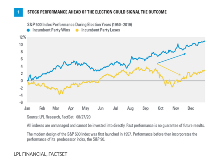 LPL金融公司首席市场策略师Ryan Detrick表示,标普500的走势图是自1984年以来最佳的美国大选预测指标,准确率高达100%,而自1928年以来该指标准确率为87%。