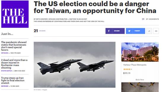 美《国会山报》刊登克罗普希分析台海战事可能的文章:美国大选对台湾可能是一种“危险信号”,对大陆则可能是一个机会。