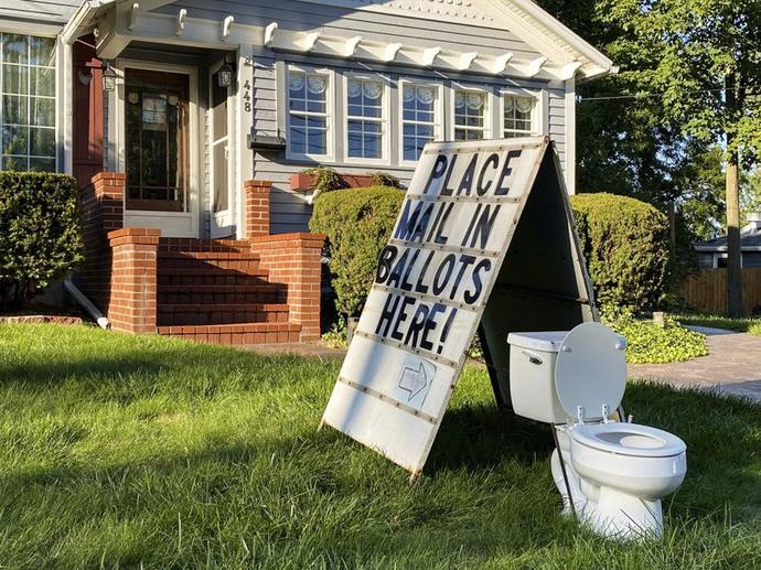 据美联社报道,该居民在草坪上放了一个马桶,并在旁边的牌子上写道:“在这里邮寄选票。”此外,草坪上还有一个要求罢免该州州长格雷琴·惠特默的标志。英格汉姆县负责选举的官员巴布·拜鲁姆(Barb Byrum)对此于18日向警方投诉,称这种展示形式会误导那些不熟悉投票系统的人。拜鲁姆说:“非法持有缺席选票是重罪。我们应该认真对待这个国家的选举,有很多人在这次选举中第一次通过邮箱投票。”