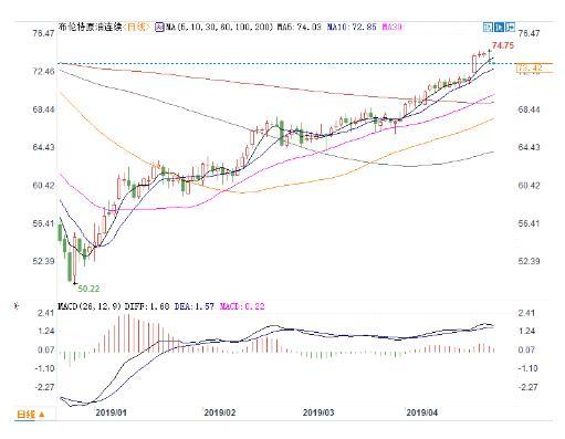 德马莱称,主要产油国没有出现进一步的重大动荡,市场也消化了美国停止伊朗制裁豁免的影响。在这种情况下,布油价格就算上升,也不太可能持续维持在75美元/桶以上。