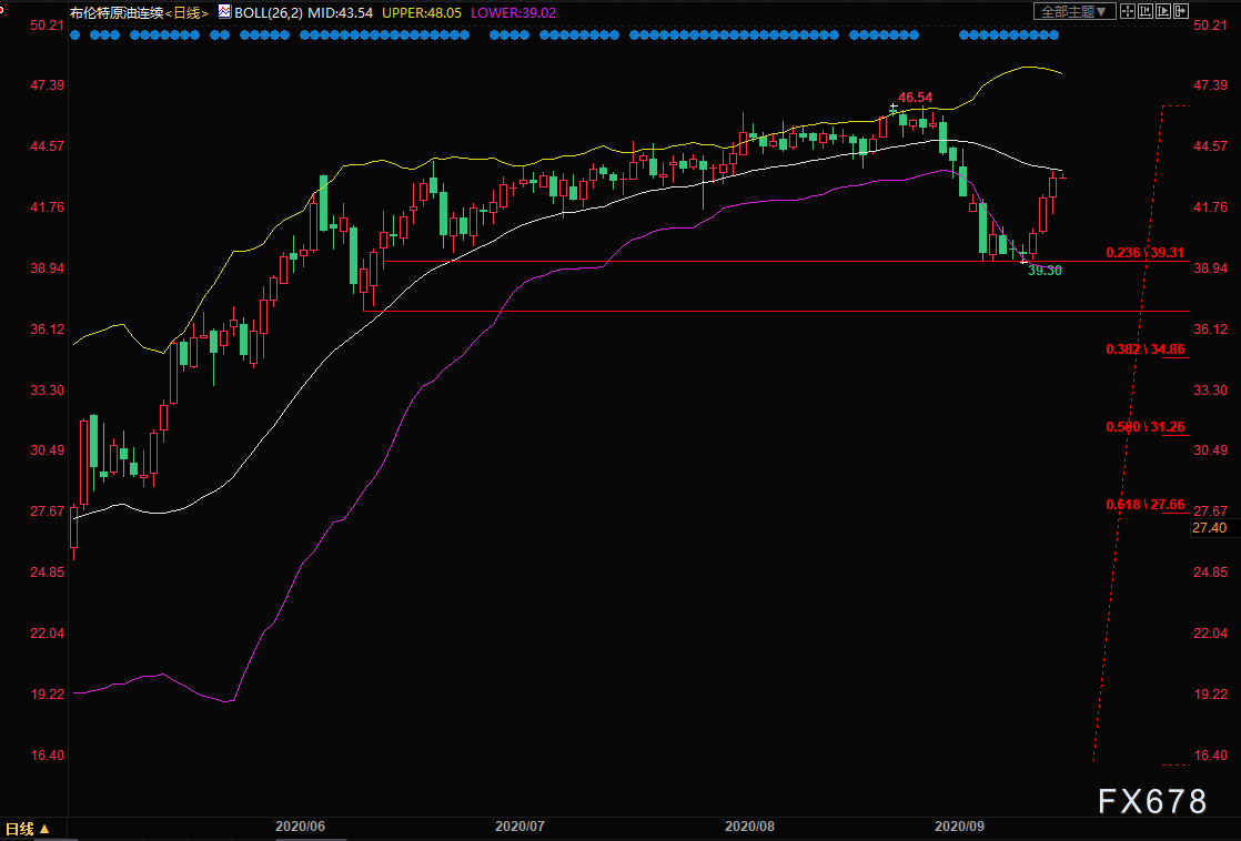 沙特方面还称,如果油市因需求疲软和新冠病例攀升而恶化,OPEC+可能会在10月召开特别会议。这凸现了OPEC+产油国努力推动油市复苏的决心,布伦特原油周四上涨3%,收报43.26美元/桶,盘中最高曾触及43.50美元/桶,为近两周新高;目前交投于43.26美元/桶附近。
