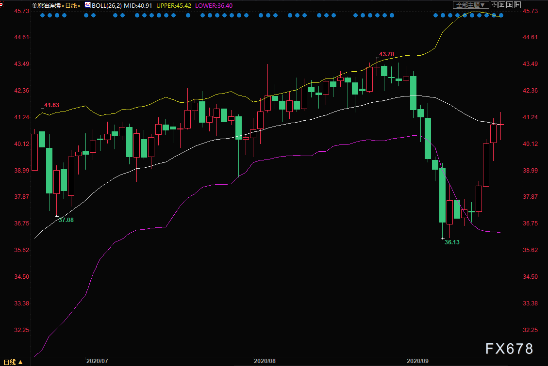 尽管上周OPEC月报和IEA下调的需求前景预期,但上周OEPC+会议以沙特为首的主要产油国通过各种方式力保油价,EIA等原油库存大幅下降,高盛和花旗等著名投行强调了看涨油价的预期,帮助油价大涨10%,美原油守在40关口上方;不过,由于利比亚宣称将允许原油生产和恢复,欧洲疫情恶化,令多头有所顾忌,短线油价面临一定的回调风险。当然,还需要留意新一轮飓风给油价的支撑情况。周一(9月21日)亚市盘初,美原油暂时交投于40.84美元/桶附近。