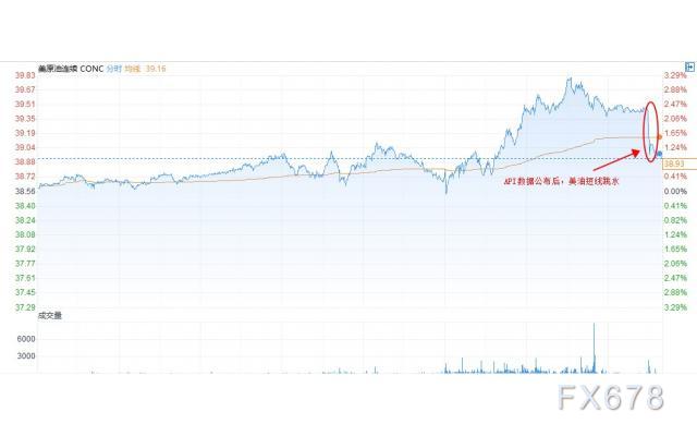 北京时间周三(10月28日)凌晨,美国石油协会(API)公布的数据显示,美国截至10月23日当周API原油库存增加457.7万桶,预期增加111万桶;汽油库存增加225.2万桶;精炼油库存减少533.3万桶;数据公布后,美油短线跳水,收报38.93美元/桶,涨幅收窄至0.96%。