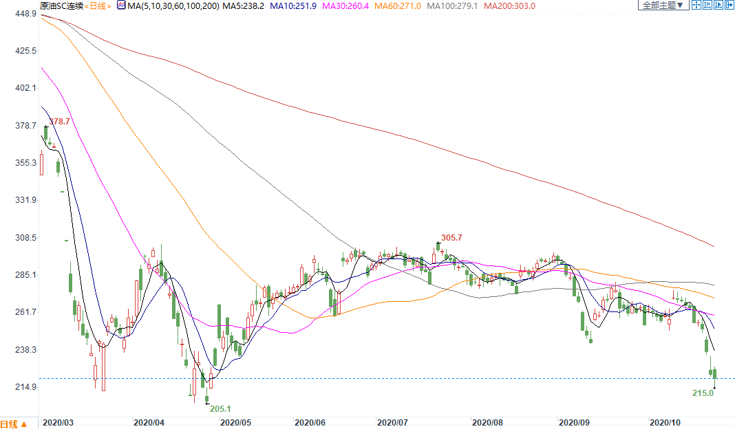 周一(11月2日)上海原油价格下跌。主力合约2012,以221元/桶收盘,下跌6.4元/桶,跌幅2.81%,盘中一度暴跌逾5%,再创半年新低。美油创五个月新低,美国总统大选竞争激烈的前景,以及美国大选前没有出台财政刺激措施,似乎都在打压风险资产和油价。而欧洲疫情的封锁加剧引发需求疑虑且利比亚继续增产原油,英国首相鲍里斯·约翰逊週末宣布对英格兰实施局部封锁,西欧大多数国家已经面临更严格的限制。石油贸易商托克(Trafigura)表示,在经历第二波疫情之际,石油需求可能遭受进一步破坏。欧洲需求可能损失150万桶/天,美国进一步损失150万桶/天。雪上加霜的是,利比亚增产原油到每日80万桶,且国营的National Oil Corp.董事长Mustafa Sanalla指出,预定2021年初的目标是日产130万桶。