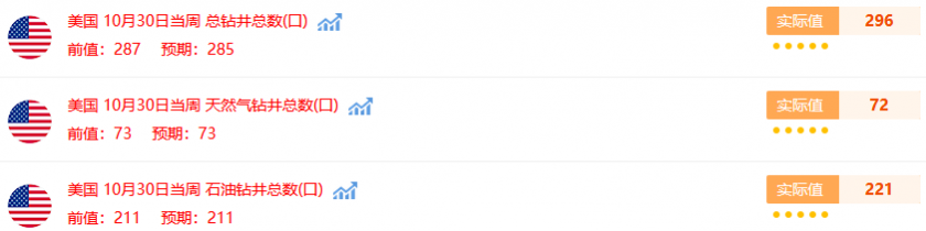 【能源服务公司贝克休斯表示,美国10月活跃钻机数连续第三个月上升,且增幅创2018年5月以来最大】