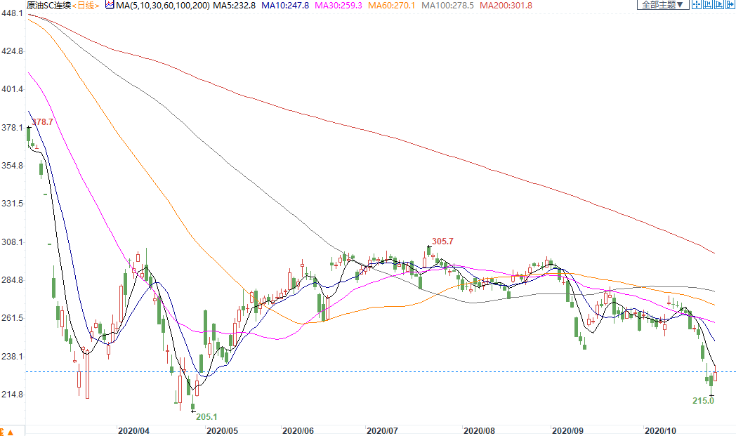 周二(11月3日)上海原油价格上涨。主力合约2012,以229.3元/桶收盘,上涨5元/桶,涨幅2.23%,一度大涨4%。美国大选来临之际,全球股市纷纷大涨,因市场对美国大选后的经济刺激政策持乐观态度,风险资产纷纷走高,而亚洲和美国强劲的制造业数据也令油价反弹。美国10月制造业活动增幅超过预期,新订单跳升至近17年来最高水平。此外,俄罗斯油企高管已与该国能源部长诺瓦克讨论了将目前的石油产量限制协议执行期延长至2021年第一季的可能性。目前需求悲观话,推迟增产的可能性在增加。此外,分析师表示,在短期内最有可能撼动股市的是周二晚间没有明确赢家的选举结果,因仍有几个州需要进行计票。法国巴黎银行分析师Harry Tchilinguirian表示,对石油供需基本面的担忧将成为配角,美国总统大选以及风险市场对结果的反应将是主角。
