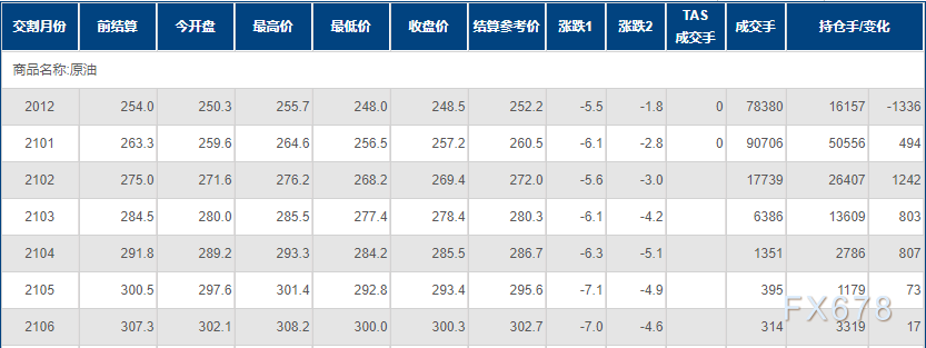 上海原油价格下跌创三个交易日新低,主力合约2012以248.5元/桶收盘,下跌5.5元/桶,跌幅2.17%。