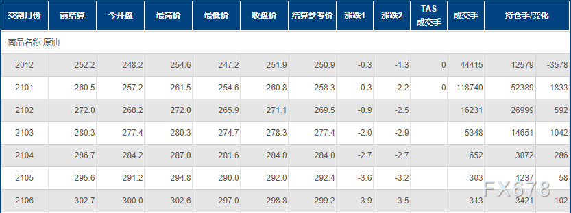 上海原油价格小幅下跌,主力合约2012以251.9元/桶收盘,下跌0.3元/桶,跌幅0.12%。
