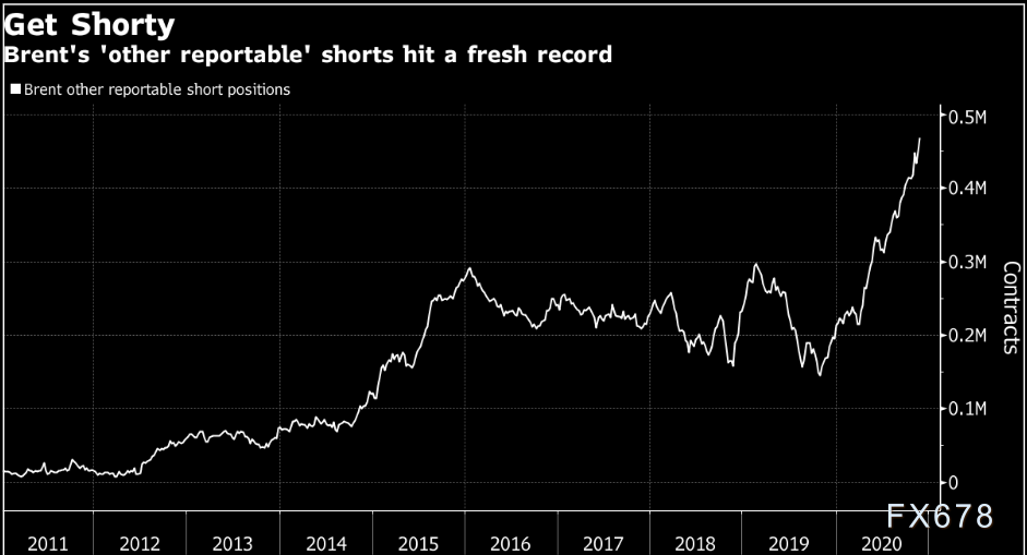 他们的看跌押注相当于4.7亿桶石油,与传统投机者的仓位形成鲜明对比:上周,传统投机者的布伦特净多头仓位升至9个月高位。