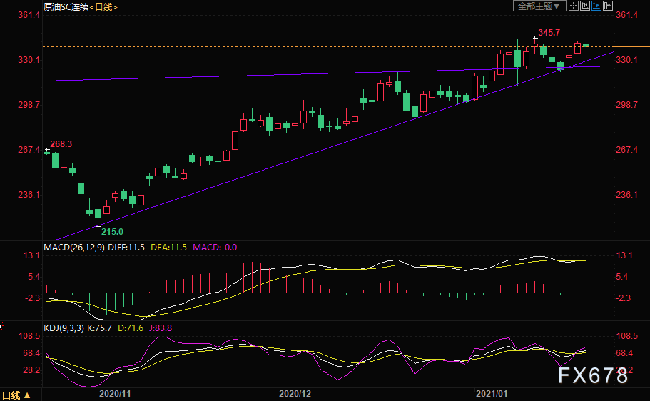 周四(1月21日)上海原油价格几乎持稳,主力合约2103终盘收于340.0元/桶,涨0.3元/桶,涨幅0.09%。一方面,市场预期美国总统拜登领导的政府将推出与大规模经济刺激措施,提振燃料需求,另一方面,美国石油协会(API)公布的数据显示,美国截至1月15日当周API原油库存意外增加256.2万桶,预期减少28万桶。
