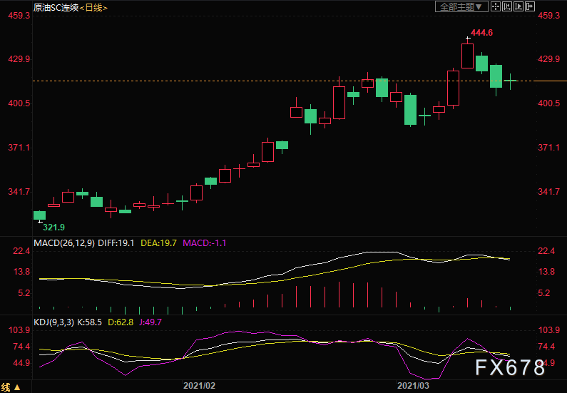 阻力位:INE原油422,美油66.0