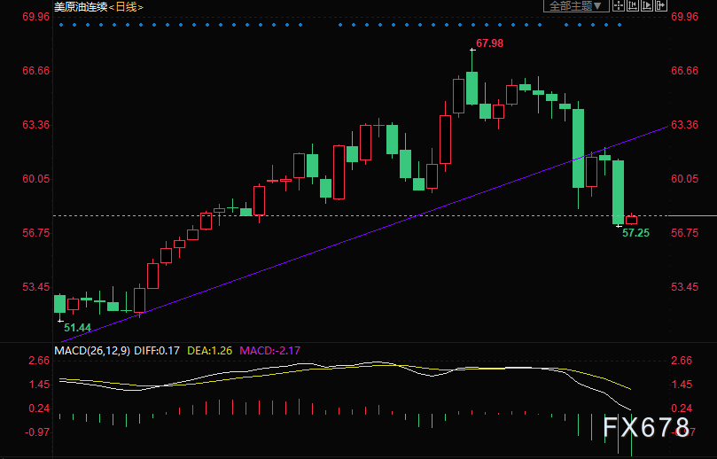 周二油价暴跌6.35%,空头连破4道整数关卡,最低跌至57.25美元/桶,人们担心欧洲新的疫情控制措施和疫苗推广缓慢,加之API原油库存增加292.7万桶。