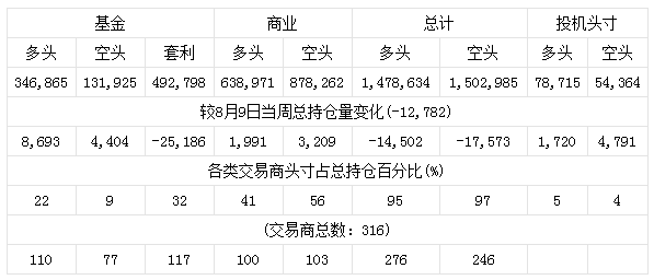 美国商品期货交易委员会(CFTC)最新公布截止8月16日当周NYMEX原油期货分类持仓报告: