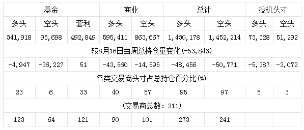 美国商品期货交易委员会(CFTC)最新公布截止8月23日当周NYMEX原油期货分类持仓报告: