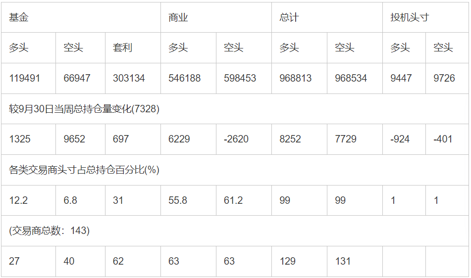 截止10月7日当周洲际交易所(欧洲)原油期货和期权分类持仓报告: