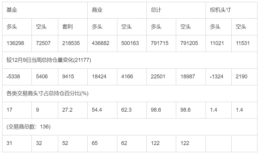 截止12月16日当周洲际交易所(欧洲)原油期货分类持仓报告: