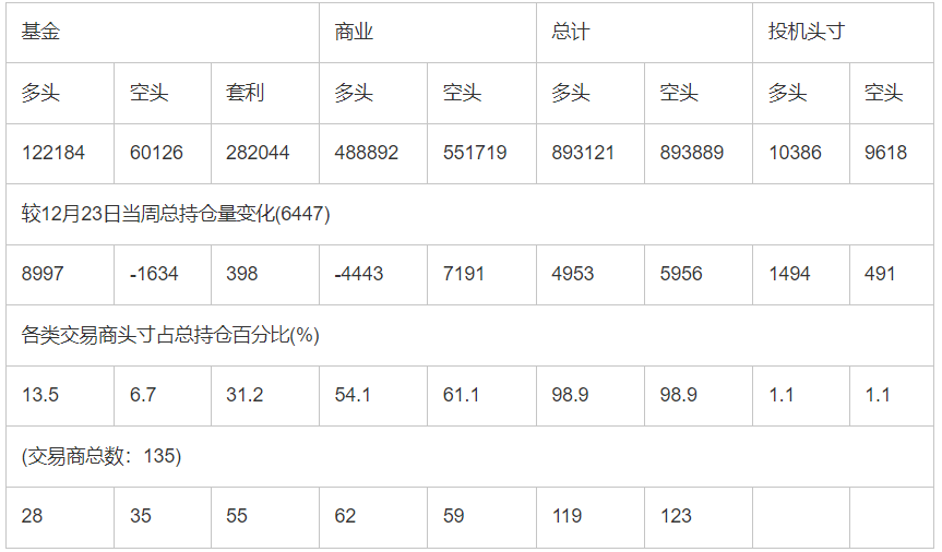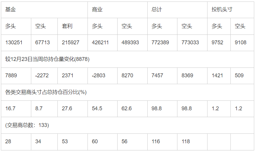 截止12月30日当周洲际交易所(欧洲)原油期货和期权分类持仓报告:
