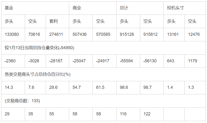 截止1月20日当周洲际交易所(欧洲)原油期货和期权分类持仓报告: