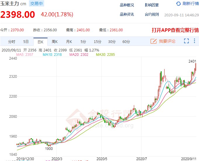昨天(9月10日),玉米期货再刷新2015年以来收盘新高,报2370元/吨,盘中最高触及2372元/吨。