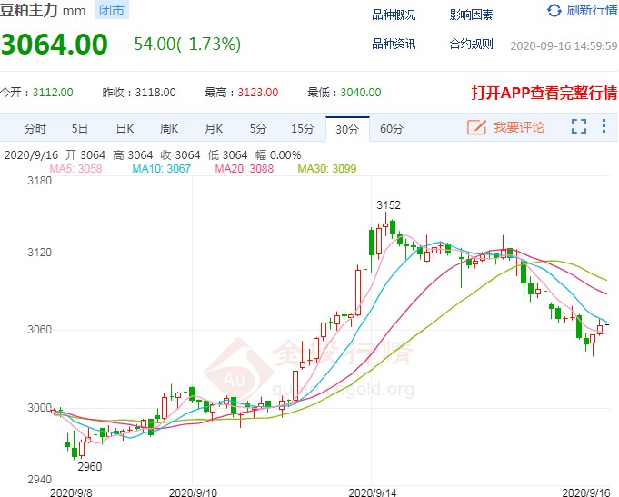 在供需报告出炉后,本周二(9.15)凌晨USDA每周作物生长报告发布,数据显示,截至9月13日当周,美国大豆优良率为63%,前一周为65%,去年同期为54%。干旱叠加风暴灾害的影响,使美豆的优良继续走低,在美豆愈演愈烈的减产背景下,我国的对大豆旺盛的需求,或将继续成为推动美豆价格拉升的动力。而美豆的大涨,也会带动国内的豆粕持续上行。