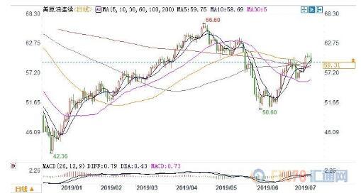 与此同时,ICE布伦特9月原油期货电子盘价格收盘下跌0.56美元,跌幅0.84%,报66.16美元/桶。