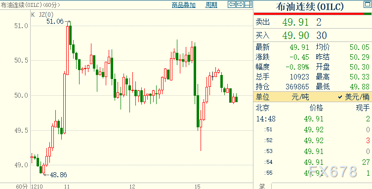 NYMEX原油期货下跌0.70%至46.66美元/桶;ICE布伦特原油期货下跌0.74%至49.92美元/桶。