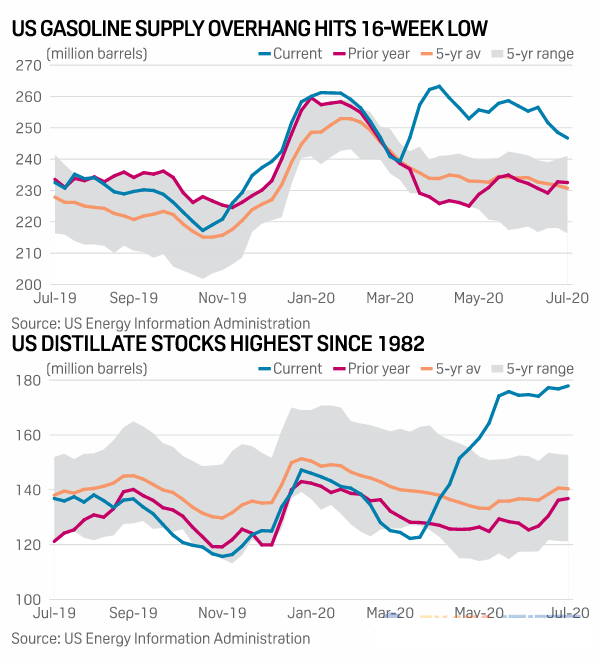 标普GlobalPlattsAnalytics的数据显示,截至7月20日,WTIMEH五日移动均线USGC裂解保证金降至4.61美元/桶,低于7月迄今的均值5.18美元/桶。在大西洋沿岸,截至7月20日的5天里,Bakken原油裂解保证金平均为4.99美元/桶,而7月以来的平均水平为5.74美元/桶。