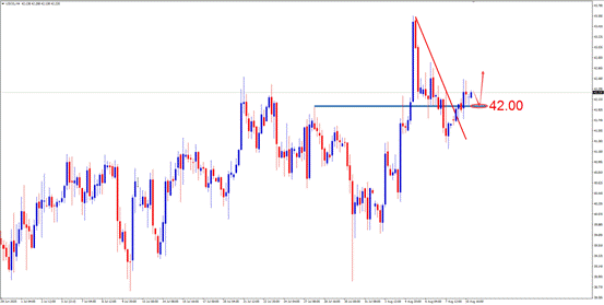 【交易策略】:价格低位反弹调整,建议激进的投资者可考虑关注42.00附近做多,止损41.30左右,目标43.00左右。