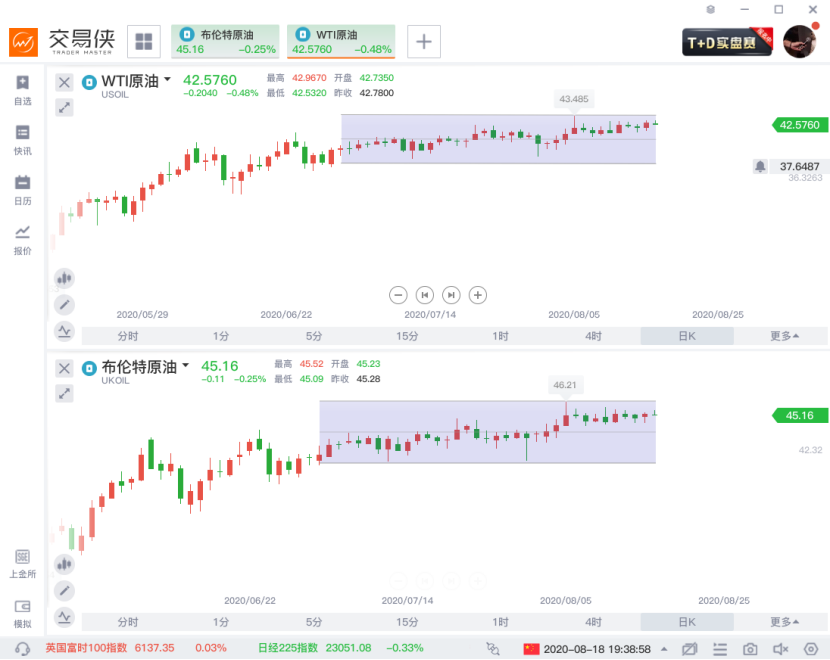 这次“会前行情”可谓让人大失所望。在最近两次(6月和7月)JMMC会议前,油价都曾出现不同程度的波动。然而,如今的油价似乎陷入了一种焦灼对抗的震荡模式,多空实力均匀,同时所有人都在屏息观望中。