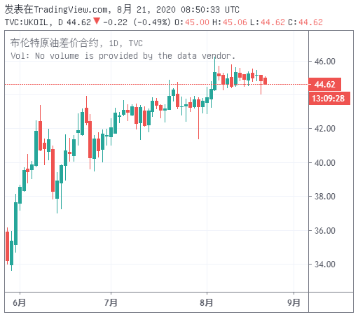 操作建议:预计日内油价将在44.40-46.20区间内震荡,可尝试高抛低吸。上方阻力关注8月19日高点45.45,突破将上探8月11日高点45.75,然后是8月5日高点46.20和2017年6月20日高点47.20,以及2月28日低点48.90和3月2日低点49.55;而下方支持留意8月17日低点44.50,跌破将下探8月20日低点44.00,然后是7月31日高点43.80和8月4日低点43.20,以及8月3日低点42.85和7月27日低点42.35。