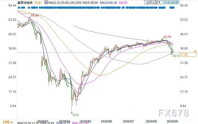 美国WTI 10月原油期货电子盘价格周四(9月10日)收盘下跌1.05美元,跌幅2.76%,报37.00美元/桶。油价周四下跌逾2%,此前EIA数据显示,上周美国原油库存意外增加,部分因为飓风“劳拉”侵袭后墨西哥湾沿岸炼油厂持续减产。同时,美股大幅下挫,进一步拖累需求前景。