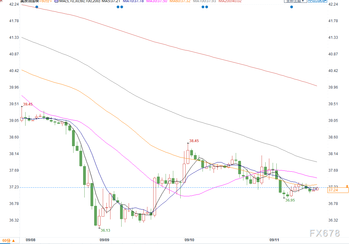 周五(9月11日)美原油小幅走低,盘中一度跌破37美元关口,现报37.21美元,跌幅0.24%。