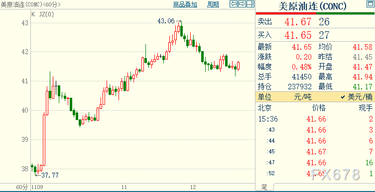 NYMEX原油期货上涨0.48%至41.65美元/桶;ICE布伦特原油期货上涨0.48%至44.01美元/桶。