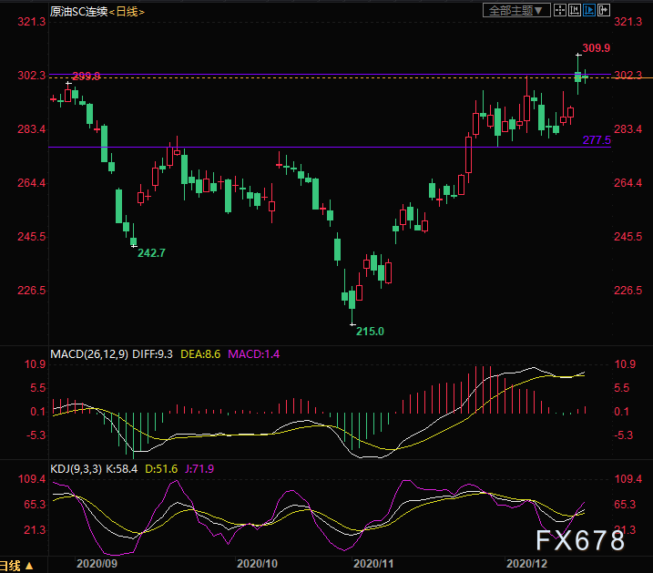 周三(12月16日)上海原油价格小幅下跌,主力合约2102终盘收于301.8元/桶,跌0.5元/桶,跌幅0.17%。美国石油协会早间公布的数据显示,截至12月11日当周,API原油库存增加近200万桶,至约4.95亿桶,沙特阿拉伯周二表示,新冠疫情爆发使得预测油市“益发具挑战性”,并警告称油市波动是经济面临的主要挑战。不过,投资者关注新冠疫苗接种,漠视欧洲收紧封锁措施,以及燃料需求复苏速度将慢于预期的预测,市场还憧憬美国将推出新一轮刺激计划,市场整体情绪偏向多头。