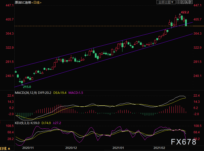 上海原油价格暴跌,创逾一周新低,主力合约2104终盘收于387.1元/桶,跌20.1元/桶,跌幅4.94%。