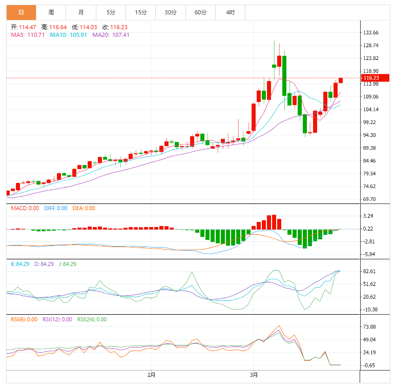 周四(3月24日)亚洲时段,美油现报116.02美元/桶;油价周三上涨,美油上涨超5%,因美国原油库存下降,进一步发出看涨信号,而风暴破坏黑海一个重要出口码头也导致供应风险加剧。