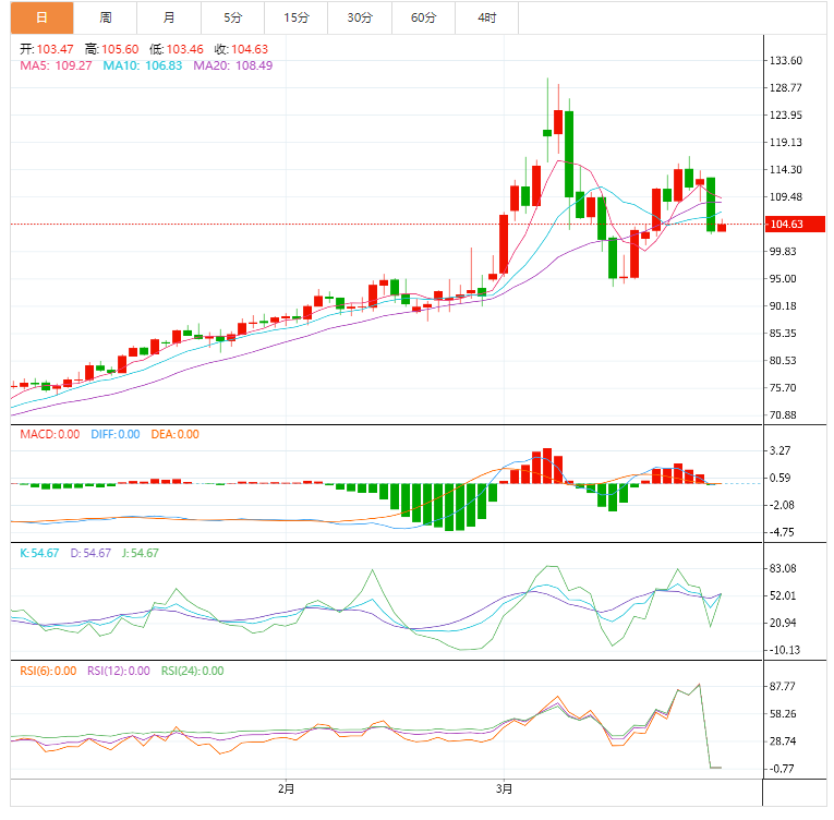 周二亚盘,美油徘徊于104美元/桶附近;油价周一下跌超8%,疫情担忧情绪再起,原油遭到抛售,OPEC+暗示周四开会时可能会坚持温和增加供应的计划之后,油价依然保持下跌;俄乌新一轮谈判当地时间28日开始,最大目标是达成停火。