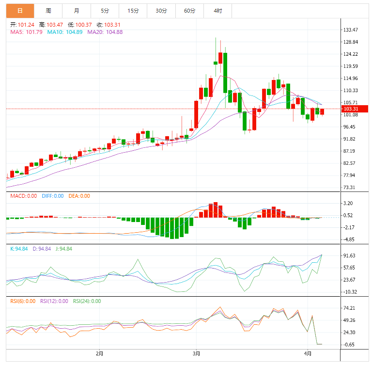 如果复苏势头持续,那么WTI价格可能会重新测试21日移动均线的看跌水平,目前为104.00美元。