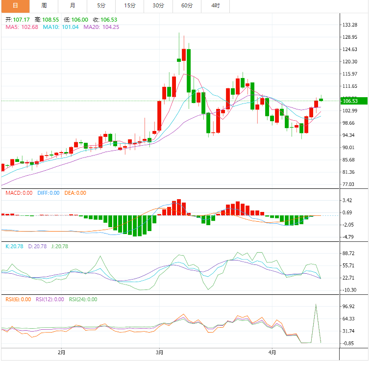 斐波那契回位工具显示,61.8%的水平与97.50美元/桶的破环趋势线一致。小幅回调可能已经在接近每桶99美元的50% Fib或100.30美元的38.2%水平上找到了买家。