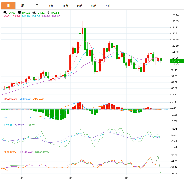 油价仍在试探每桶102美元附近的领口线,因此如果油价跌至低位,可能会出现同样高度的下跌。然而,技术指标显示,支撑位可能会持续。