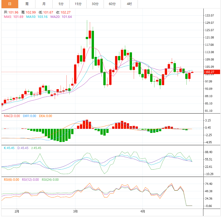 周三(4月27日)亚洲时段,美油现报102.26美元/桶;油价周二在震荡交投中反弹,俄罗斯与欧洲能源矛盾重大升级,且美国不理会俄罗斯的核战争警告,助推地缘局势紧张加剧。